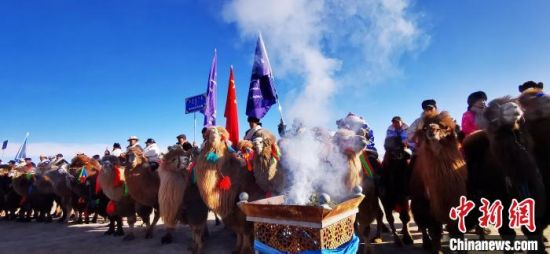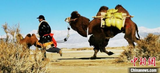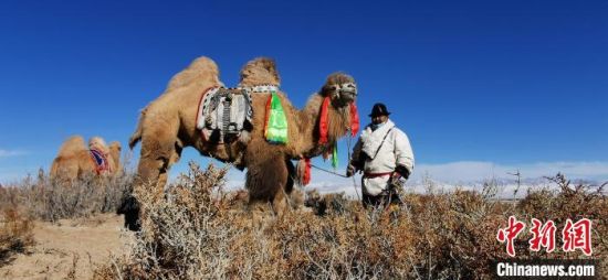 图为蒙古族民众牵骆驼。 张西红 摄