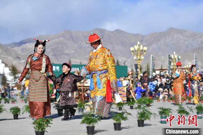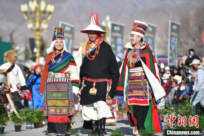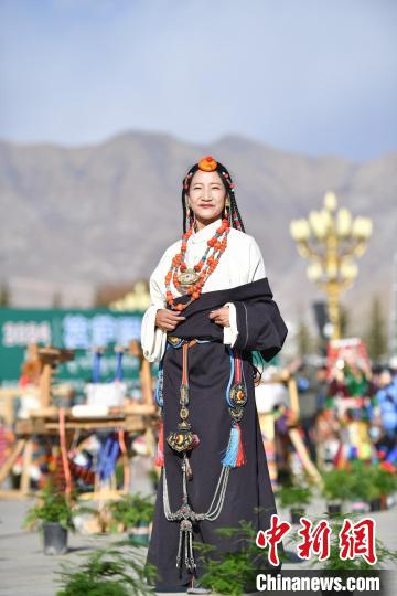 图为模特在展示日喀则传统服饰。贡嘎来松 摄