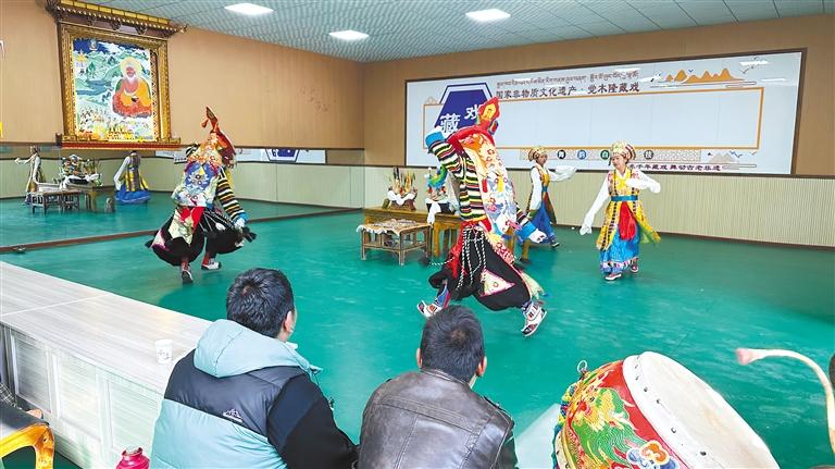 洛桑扎西为年轻一代传授藏戏表演技艺。