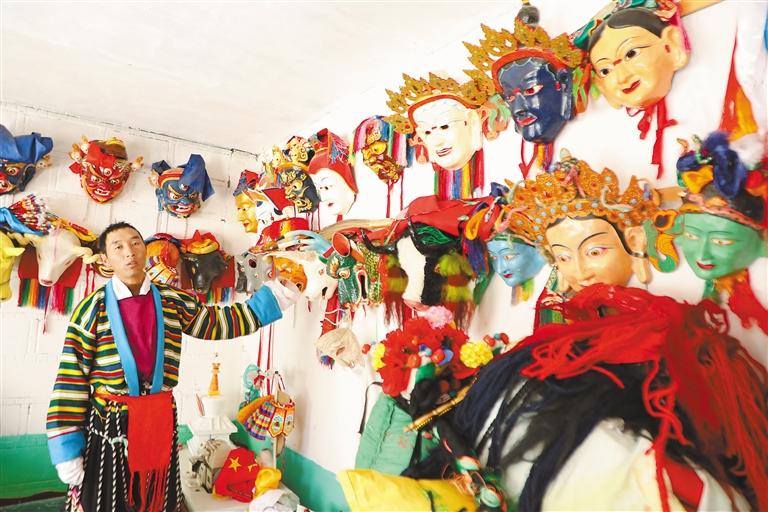 觉木隆藏戏队的各式藏戏面具。