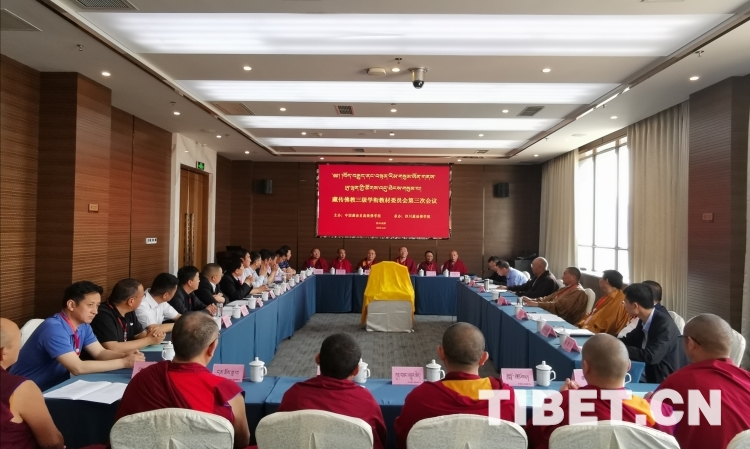 中国西藏网讯 4月22日,藏传佛教三级学衔教材编委会第三次会议在四川省成都市召开。开幕式上,西藏佛学院院长、三级学衔教材编委会主任珠康•土登克珠致辞,中央统战部负责同志、四川省委统战部负责同志到会指导。中国藏语系高级佛学院副院长、藏传佛教三级学衔教材编委会副主任刘鹏主持会议。编委会成员及寺院代表、五省区佛学院教材负责人共计40余人参会。