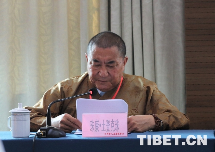 珠康•土登克珠在致辞中指出,今年是新中国成立70周年,70年来国家发生了翻天覆地的变化,我国宗教的历史也翻开了崭新的一页。实践证明,宗教的前途命运是与国家的前途命运紧密联系在一起的。党和国家十分重视藏传佛教工作,对藏传佛教代表人士的成长十分关心。十八大以来,以习近平同志为核心的党中央高度重视宗教工作,坚持和发展党的宗教工作理论、方针、政策。先后召开了中央民族工作会议、中央统战工作会议、中央第六次西藏工作座谈会、全国宗教工作会议,针对宗教工作作出了一系列重要指示,提出要不断丰富和发展中国特色社会主义宗教理论,坚持我国宗教的中国化方向。指明做好党的宗教工作,把党的宗教工作基本方针坚持好,关键是要在“导”上想得深、看得透、把得准,做到“导”之有方、“导”之有力、“导”之有效。提出要坚持政治上靠得住、宗教上有造诣、品德上能服众、关键时起作用的标准,支持宗教界搞好人才队伍建设。要求坚决抵御境外利用宗教进行渗透,防范宗教极端思想侵害。