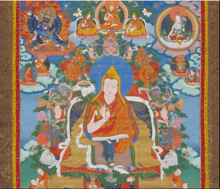 图为清宫旧藏18世纪《达赖喇嘛源流——格桑嘉措唐卡》(局部) 图片来源:故宫博物院官网