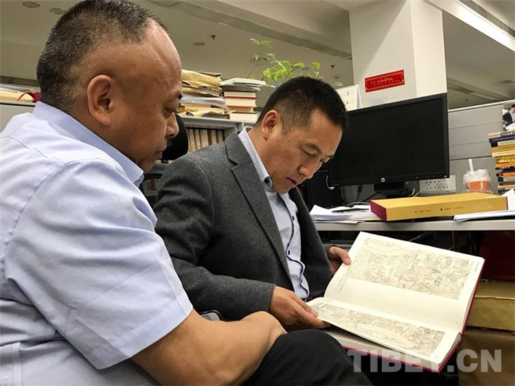 图为参与档案出版工作的四川民族出版社社长泽仁扎西(右)
