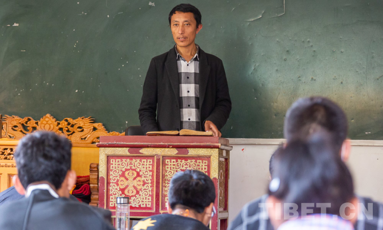 图为伦珠正在课堂上为学生授课 摄影:赵耀