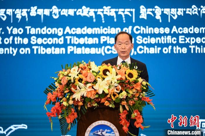 6月17日,中国科学院院士、中国科学院青藏高原研究所研究员、博士生导师姚檀栋在第五届中国西藏旅游文化国际博览会主旨论坛上对第二次青藏科考的最新成果进行了演讲分享。他表示,考察实证汉藏同源,并将青藏高原人类活动历史推至20万年前。 中新社记者 贡嘎来松 摄