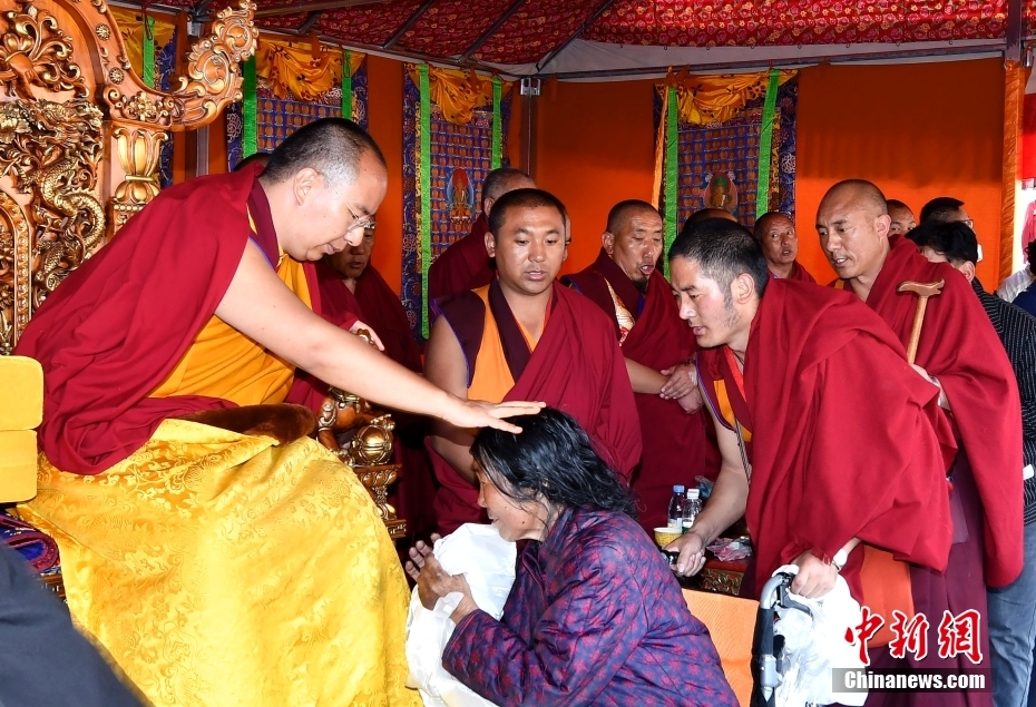 班禅在西藏昌都强巴林寺礼佛讲经、为信众摸顶赐福