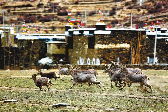 图为琼结琼果河国家湿地公园琼结镇雪康村段有岩羊出没。 记者 王菲 通讯员 曲杰 摄