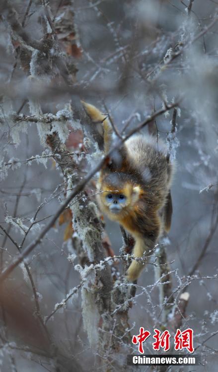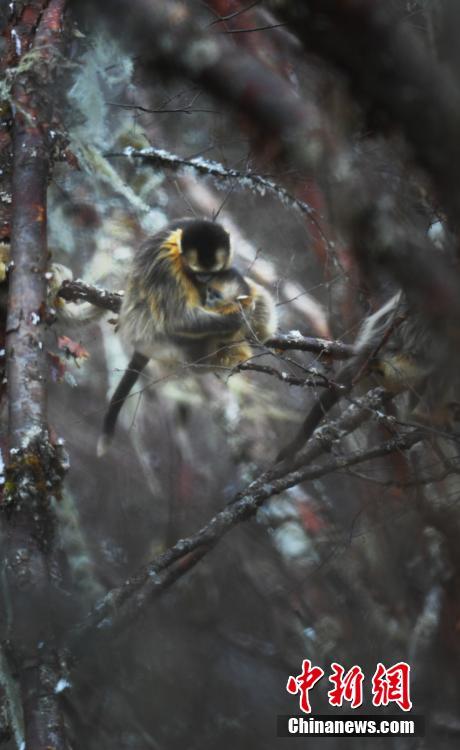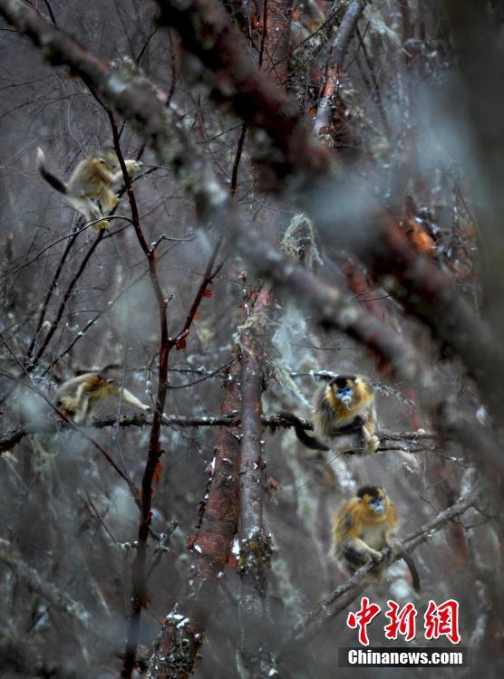 川金丝猴在雪中树林里玩耍。高华康 摄