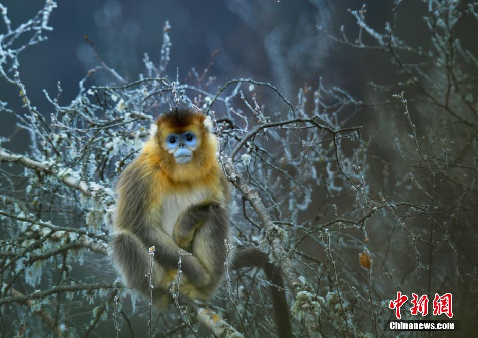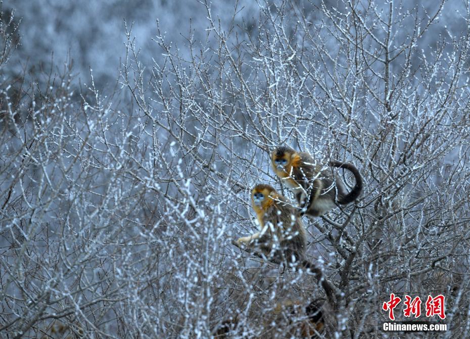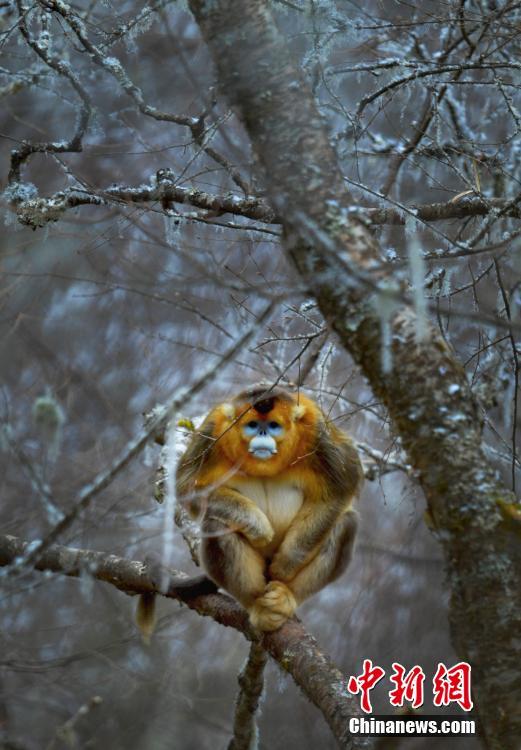 近日,在四川雅安市宝兴县境内的夹金山上、海拔3000米左右被大雪覆盖的树林里,出现了大量的川金丝猴群。它们有的带着小猴依偎在树上睡觉,有的在啃吃树皮,有的在树上你追我赶、嬉戏打闹。高华康 摄