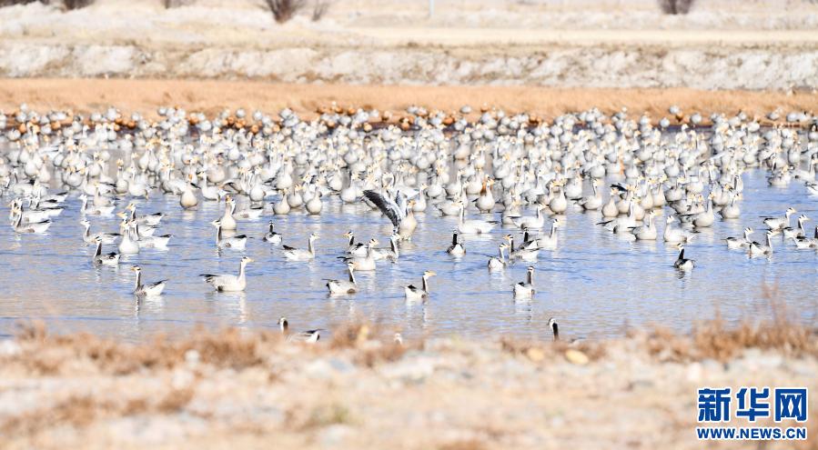 斑头雁在拉萨市林周县境内的河道休憩(2020年11月20日摄)。新华社记者 晋美多吉 摄