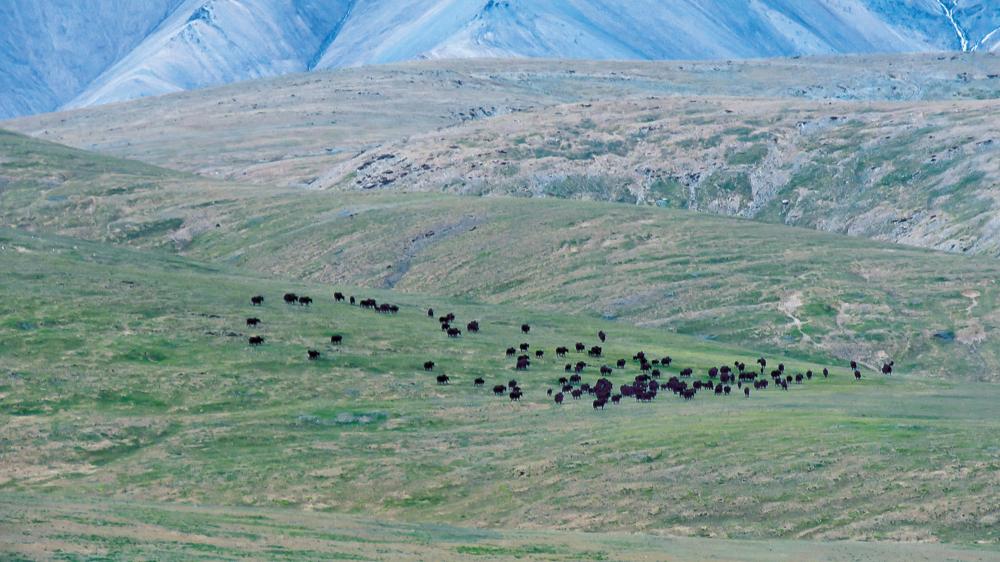 日前,青海省玉树藏族自治州曲麻莱县曲麻河乡昂拉村生态管护员涛西昂扎在杂日尕呐山巡护途中拍摄到了一个极为震撼、又特别罕见的场面:一个种群数量达二三百头的野牦牛群正在悠闲地吃草。
