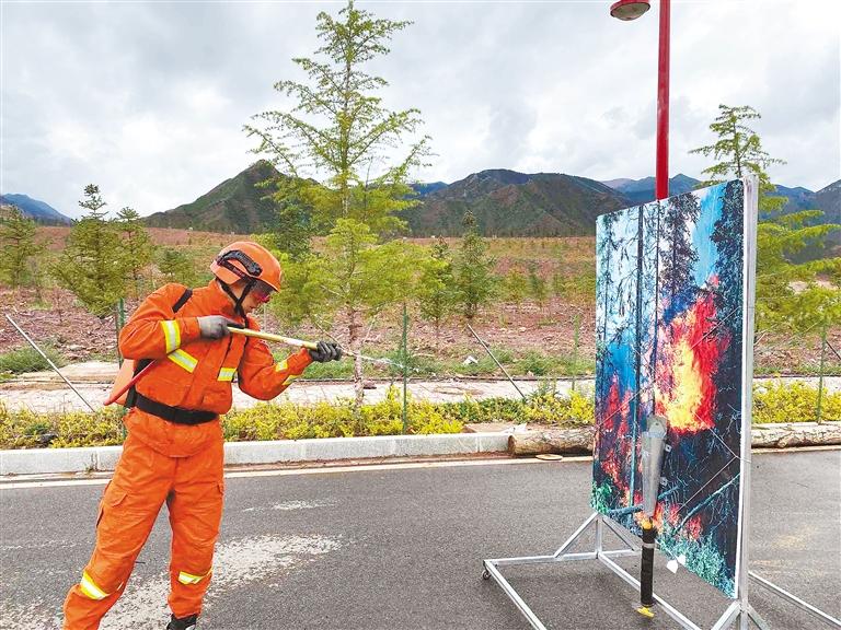 昌都市森林消防支队开展单人水泵架设与撤收科目训练。
