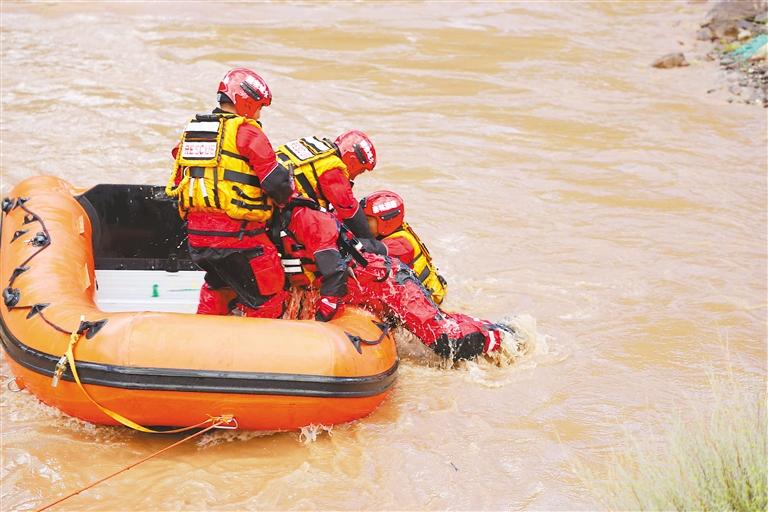 消防员进行水枪操作训练,不断丰富实战化训练内容。