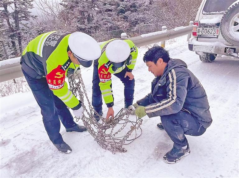两节值守,冰雪执勤,对于连续多年在这里进行保通的巴宜区公安局交警大队副队长马志铎来说,早就习以为常。马志铎说:“遇强降雨、强降雪、泥石流恶劣天气,以及冬季返乡高峰期、各道路‘保通任务’等情况,都是大队全警出动前往色季拉山,无休息,无论男女,遇色季拉山夜间存在滞留车辆等情况,24小时‘保通’是常态。”