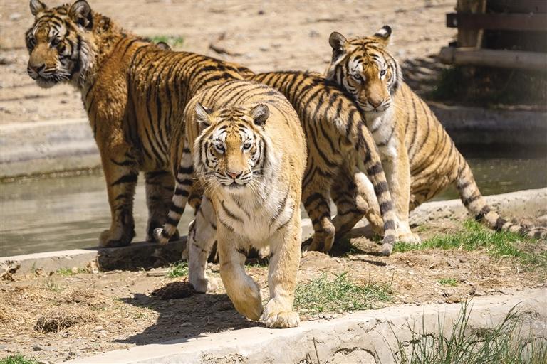 坐上观光车前行,目光瞬间被一旁的梅花鹿所吸引。它们或卧或站,看到观光车后又驻足不动,像是在玩“123木头人”;再往前走,雪豹正来回踱步,偶尔会突然凑近玻璃;秃鹫立在树桩上,一动不动;羊驼慵懒地坐在地面,享受着树下斑驳的阳光和充满青草香味的微风;棕熊对着游客挥手,随后转头向饲养员要苹果……穿梭在各个动物场馆之间,我们看到了有着漂亮羽毛的孔雀、凶猛的狮子、张嘴等待喂食的骆驼、悠闲散步的斑马等众多动物。
