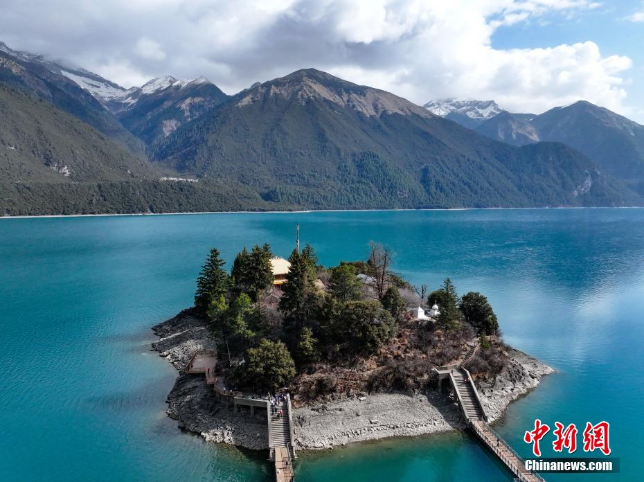 3月30日,航拍巴松措春日风景。巴松措又名错高湖,位于西藏自治区林芝市工布江达县,是西藏首个自然风景类国家5A级旅游风景区。从空中俯瞰巴松措,碧蓝的湖水被雪山、森林环绕,宛如镶嵌在群山间的“蓝宝石”。(无人机照片)