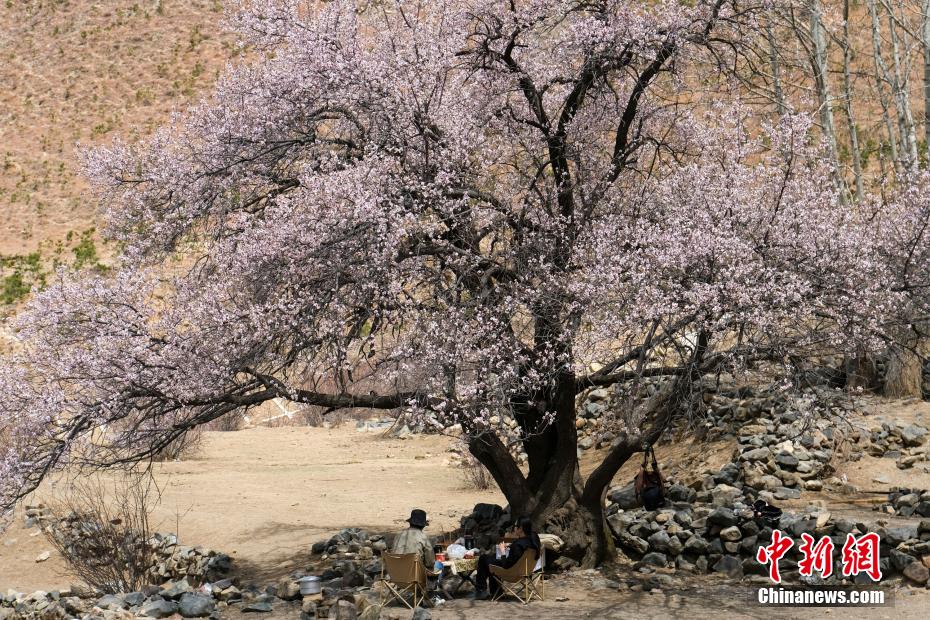 3月下旬,高原已是一片春意。西藏拉萨市区拉萨河南岸慈觉林的古桃树进入盛花期,3月30日恰逢周末,不少市民游客前往赏花“打卡”,在桃树下野餐等,享受高原春日风光。图为3月30日,民众在拉萨慈觉林桃花树下野餐,享受悠闲时光。