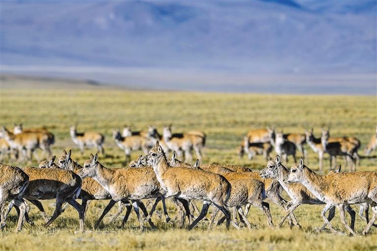 每年5月至7月,藏北高原羌塘国家级自然保护区内的雌性藏羚羊进入迁徙繁殖季。它们从平时散居的栖息地汇集一处,形成成千上万头的种群,遵循同样的时间和路线,向着族群自古以来的产羔地迁徙,这是被誉为“全球最壮观的三大有蹄类动物大迁徙之一”的藏羚羊迁徙。