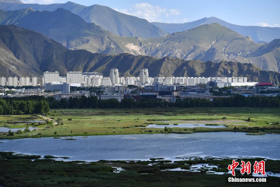 7月8日,位于西藏自治区拉萨市的拉鲁湿地国家级自然保护区水草丰茂、风景如画。拉鲁湿地保护区面积超过12平方公里,是拉萨市氧气的主要补给源。拉鲁湿地于2017年入选中国首批国家湿地旅游示范基地。图为拉鲁湿地景色。