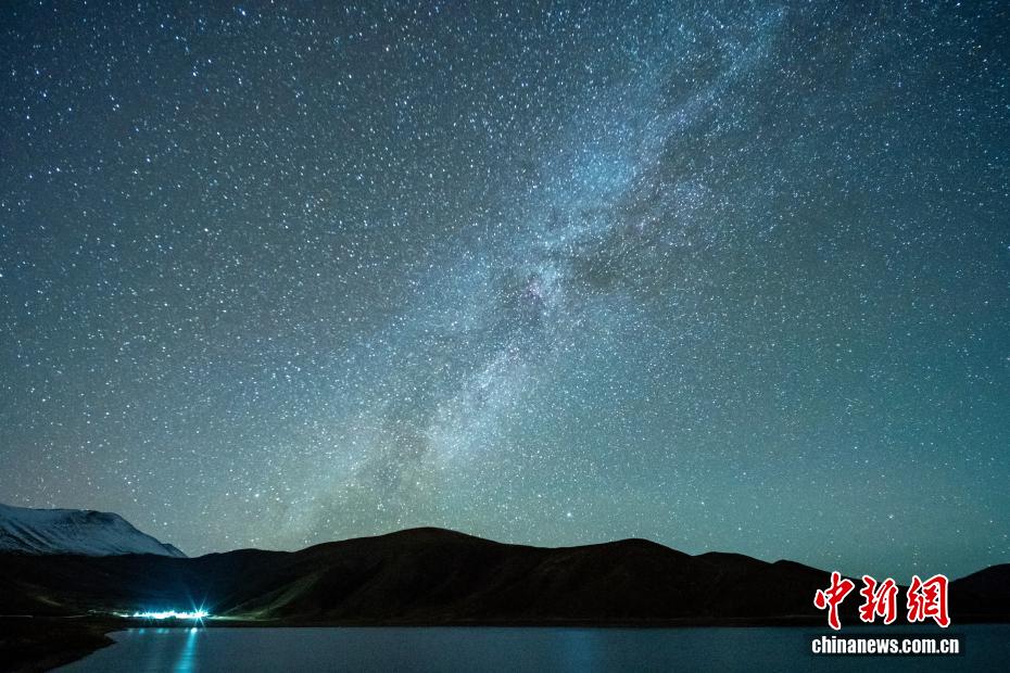 西藏羊卓雍错简称羊湖,藏语意为“碧玉湖”,湖面海拔4400多米,是西藏三大“圣湖”之一。近日,今年的狮子座流星雨达到峰值,每小时约能看到15颗流星。中新网记者在羊湖畔拍摄到初冬的羊湖银河及狮子座流星划过高原夜空等画面。图为11月16日,夜幕下的羊湖和银河风光。