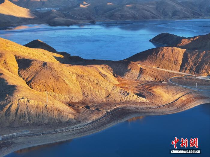 1月18日,西藏羊卓雍错流域沉错风光。(无人机照片)中新社记者 贡嘎来松 摄