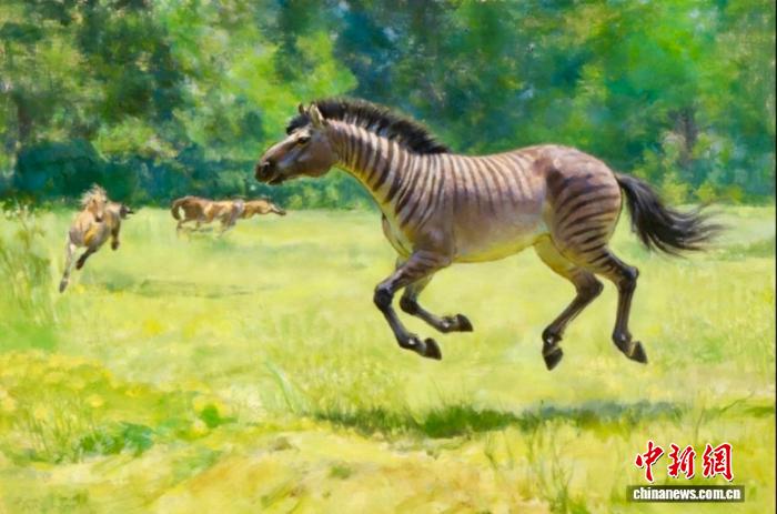 长鼻三趾马奔跑于开阔环境的生态复原图。邓涛 供图
