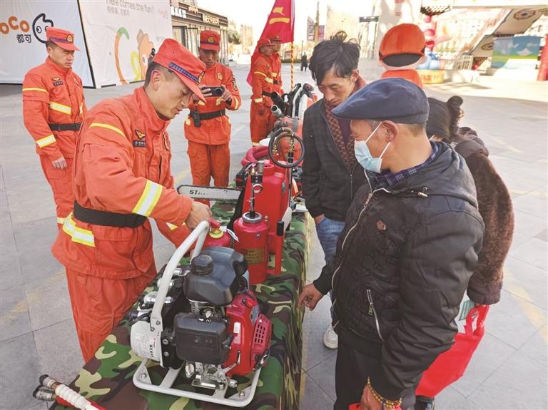 现场,消防指战员们结合高原防火实际,细致讲解日常用火注意事项、火灾隐患排查技巧及应急处置方法,耐心解答群众疑问,叮嘱大家既要守护好自家安全,也要带动家人、邻里共同参与防火工作,共同守护雪域高原绿水青山。