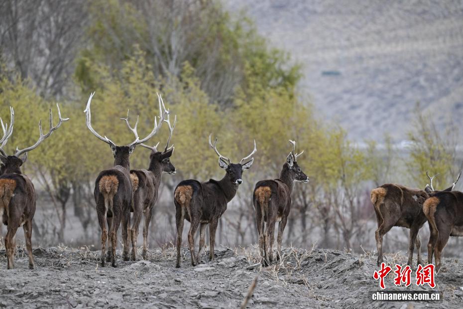 3月15日,在西藏山南市雅鲁藏布江沿岸林地,中国国家一级保护动物白唇鹿成群现身。它们或漫步觅食,或驻足观望,与高原江水、河谷林木、城市建筑相映成趣,构成和谐画面。
