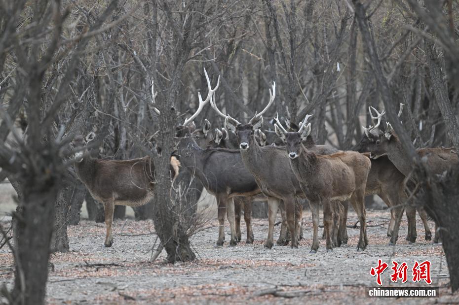 3月15日,在西藏山南市雅鲁藏布江沿岸林地,中国国家一级保护动物白唇鹿成群现身。它们或漫步觅食,或驻足观望,与高原江水、河谷林木、城市建筑相映成趣,构成和谐画面。