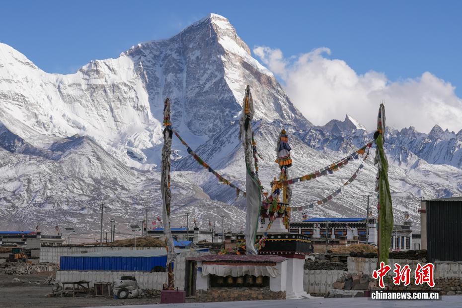 3月26日,西藏日喀则亚东县卓木拉日雪山银峰耸立,山脚下藏式村落错落,经幡随风舒展。牧民赶着牛羊归牧,与皑皑雪峰、高原草场相映,构成宁静壮美的春日图景。卓木拉日雪山位于亚东县帕里镇,又名“神女峰”。图为卓木拉日雪山脚下的藏式村落。
