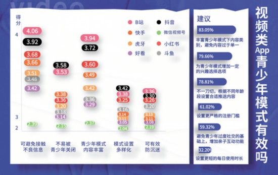近年,短视频为青少年教育和成长带来了很多便利,但青少年沉迷网络也困扰着一些家长。一些短视频及直播平台通过上线青少年模式、防沉迷系统等功能,防止青少年过度使用。这些平台的“防沉”效果究竟如何?近日,中青校媒邀请118名大学生对抖音、B站、快手、微信视频号等多个视频平台的防沉迷系统进行测评。测评中,大学生分别从视频平台青少年模式的设置入口容易找到程度、不易被孩子自行关闭程度、青少年接触不良信息程度、内容类型和丰富程度,以及是否可以有效防止青少年网络沉迷等多个方面进行测评。