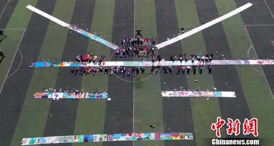 图为近日,来自日喀则多所学校的近100位少年共同完成了一幅关于“美丽与梦想”的100米长手绘画卷,以迎接“六一”儿童节的到来。主办方 供图