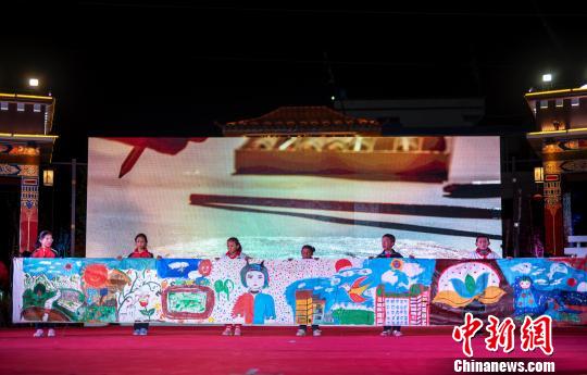 图为近日,孩子们展示百米画卷。主办方 供图