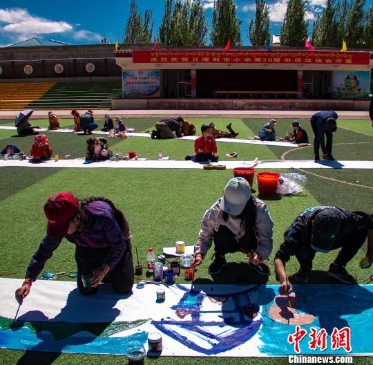 近日,在被称为“珠穆朗玛峰之乡”的西藏自治区日喀则市,来自当地多所学校的近100位少年共同完成了一幅关于“美丽与梦想”的100米长手绘画卷,以迎接“六一”儿童节的到来。