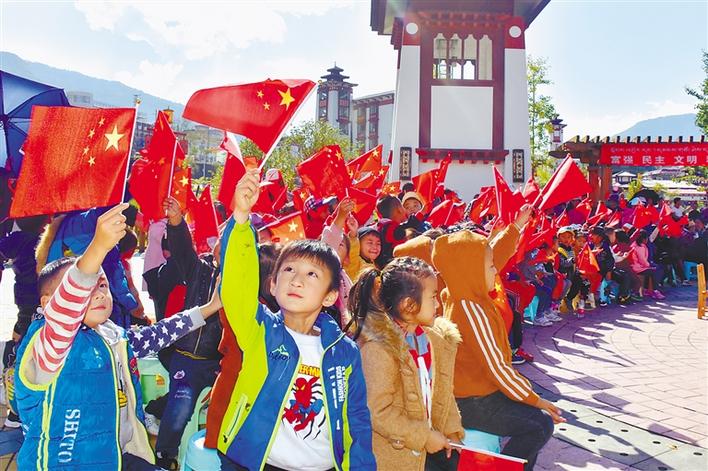 墨脱县举办的文体活动中,小朋友手持小国旗,表达爱国情。记者 孙文娟 通讯员 李龙勇 摄