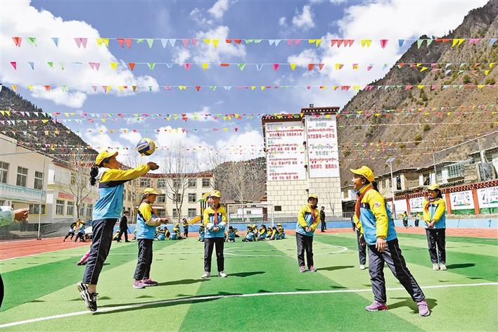 昌都市边坝县尼木乡希望小学学生正在上体育课。记者 潘多 唐斌 摄
