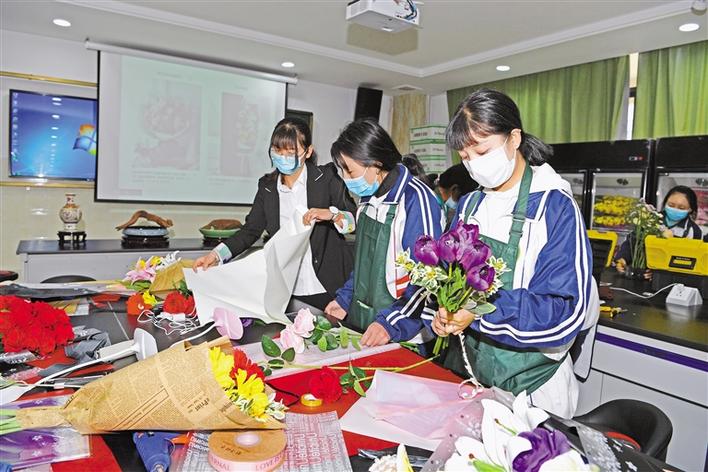 拉萨市第一中等职业技术学校学生正在学习插花技艺。记者 唐斌 摄