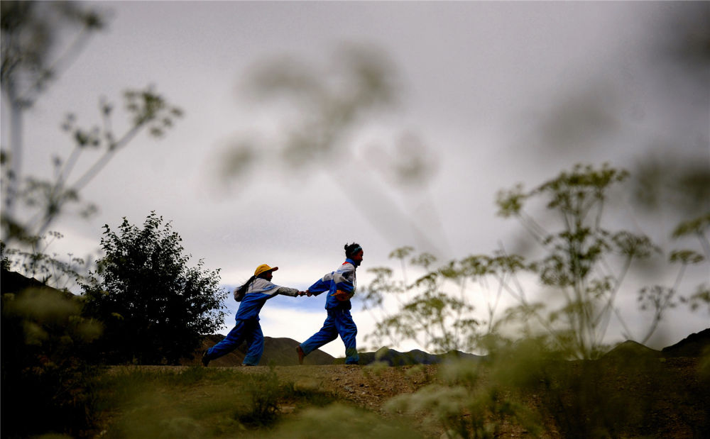 西藏拉萨市墨竹工卡县的两名孩子放学回家(2010年7月14日摄)。新华社记者 普布扎西 摄