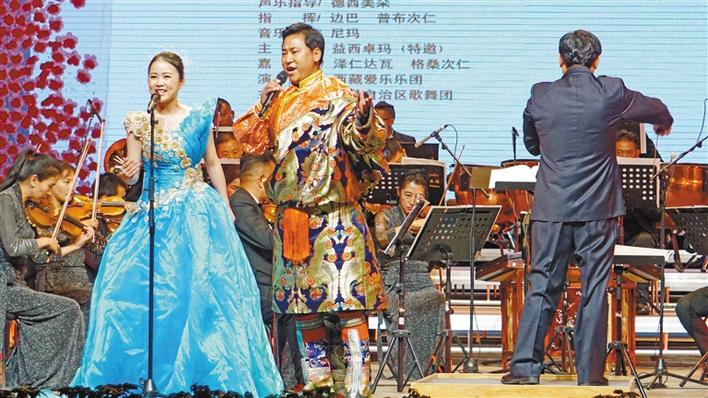 图为自治区歌舞团歌唱演员岳虹与泽仁达瓦在合唱歌曲。 郑璐 袁海霞 摄