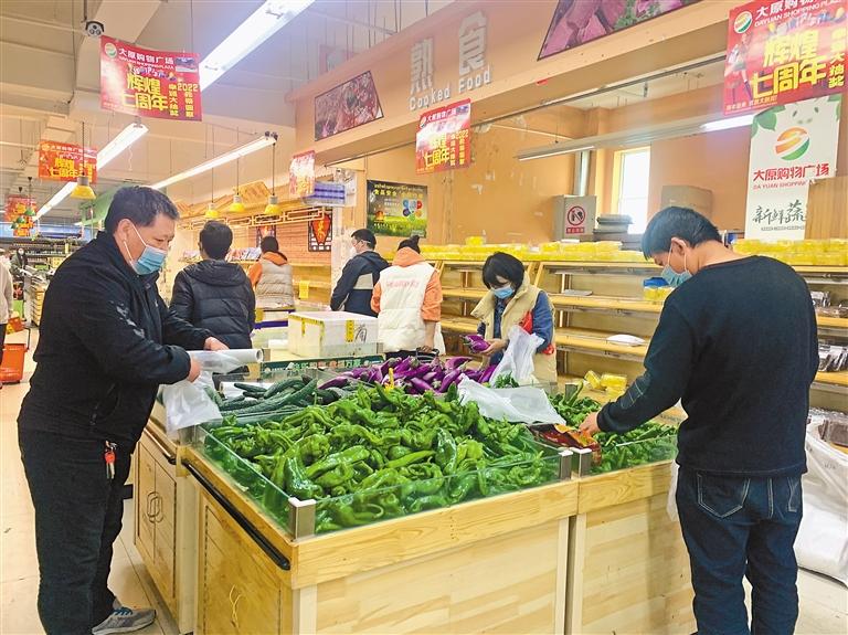城市街道慢慢恢复昔日场景,街上的人多了起来,不少群众到超市、菜市场购买新鲜食材。