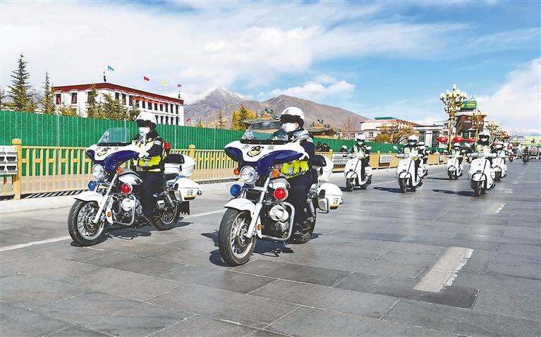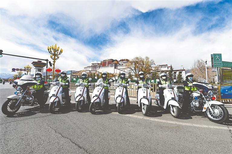 拉萨市公安局交警支队城北大队女子中队交警飒爽英姿。记者 唐斌 摄