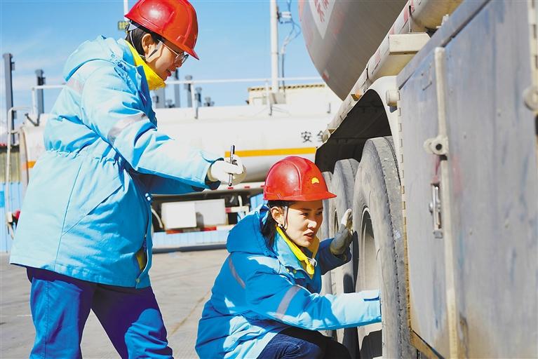 中国石油运输西藏分公司女员工在养护车辆。记者 次仁平措 摄