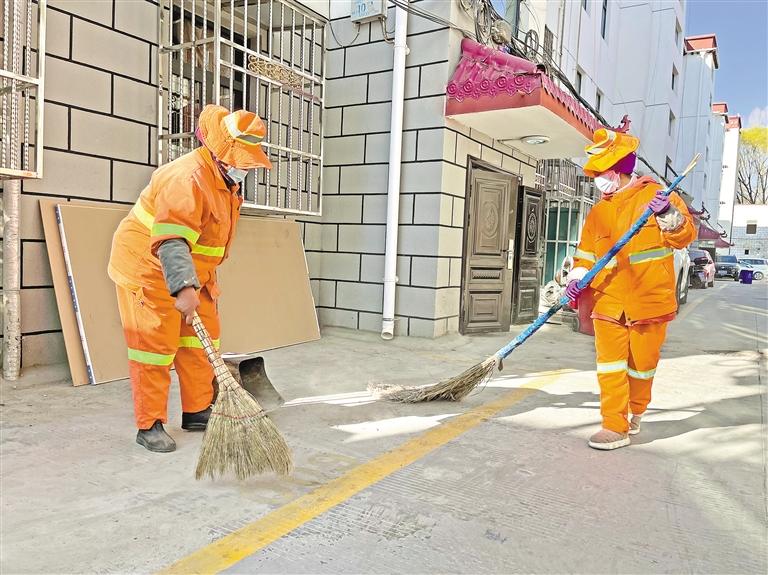 萨市城关区女环卫工人在清扫地面。记者 旦增兰泽 摄