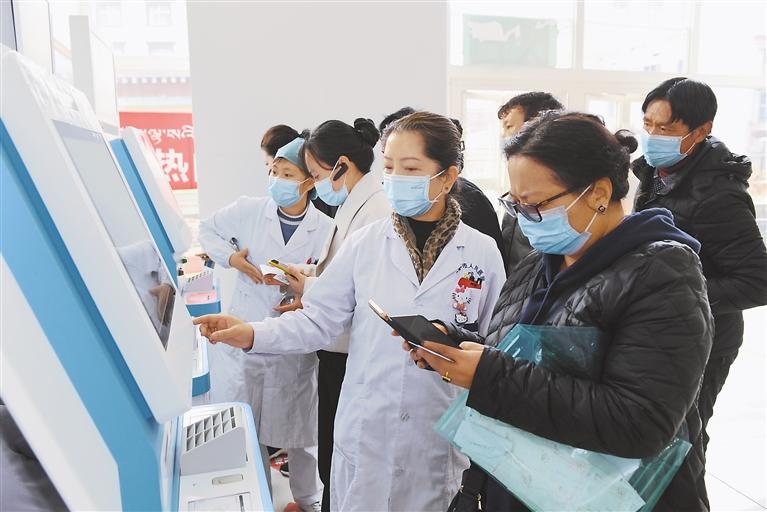 拉萨市人民医院女医务人员帮助患者家属办理业务。记者 丹增群培 摄