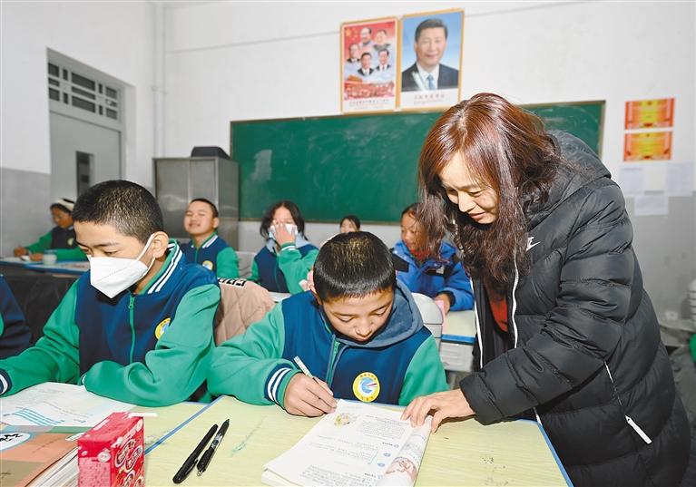 西格办中学女教师给学生辅导功课。 记者 王敏 摄