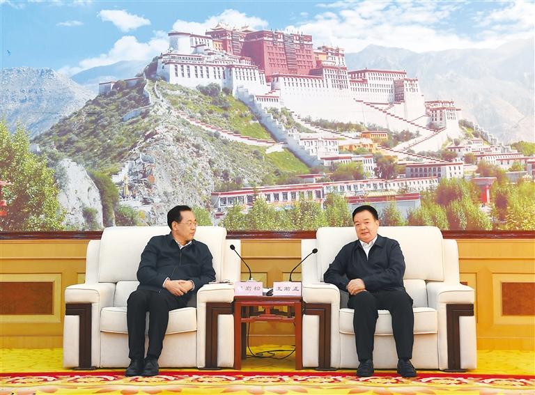 近日,西藏自治区党委书记王君正与新华社总编辑、党组副书记吕岩松一行座谈。