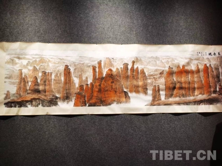 中国西藏网讯 10月29日,“中华民族共同体意识视域下西藏系列刘洋国画作品展”在拉萨开展。此次画展为西藏自治区2023年度文艺创作扶持项目,以“山川藏痕”为主题,由西藏自然科学博物馆,西藏宫桑曲印文化科技有限公司承办。此次展览也是西藏艺术家以中国画笔法展示西藏山水自然风光等题材的画展。