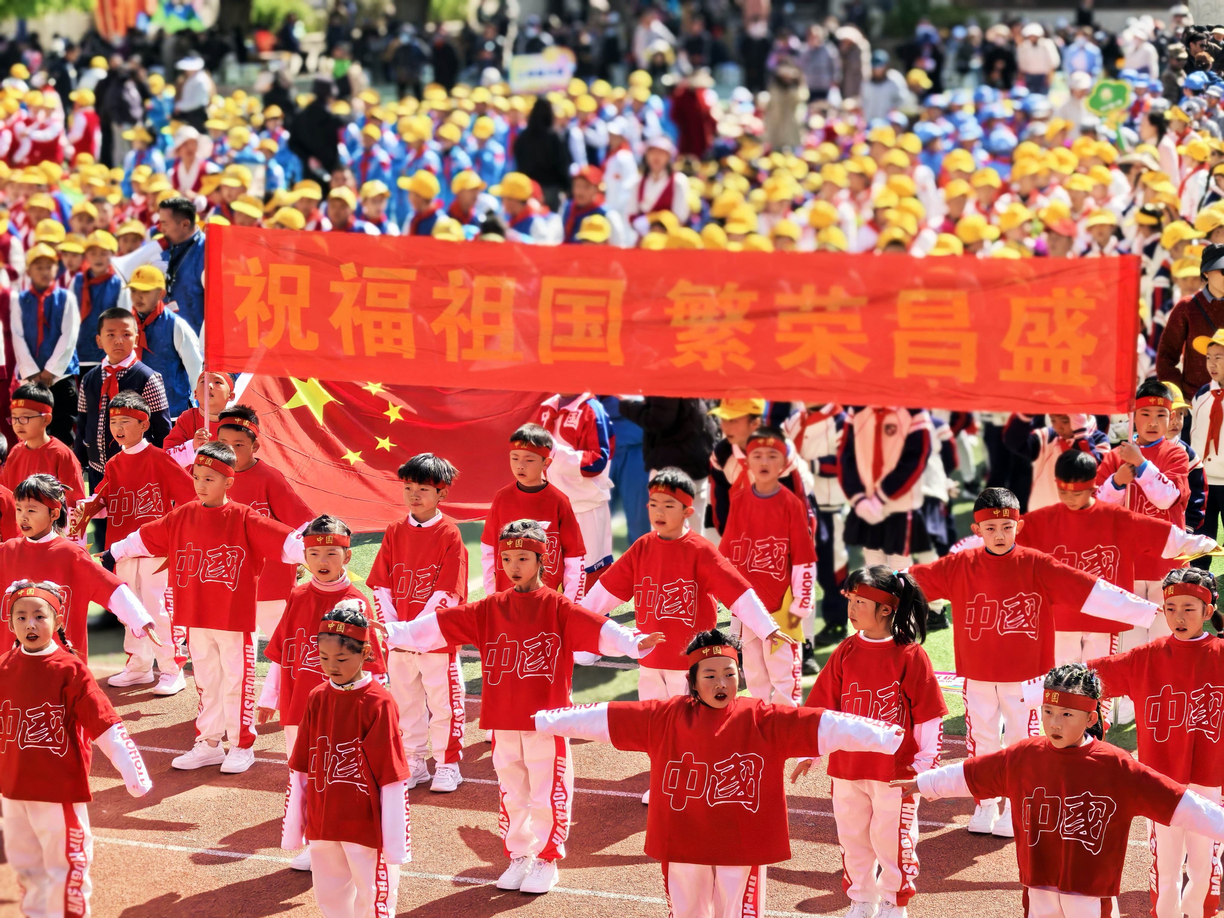 拉萨市第一小学学生在运动会上表演节目。记者 朱颖 摄