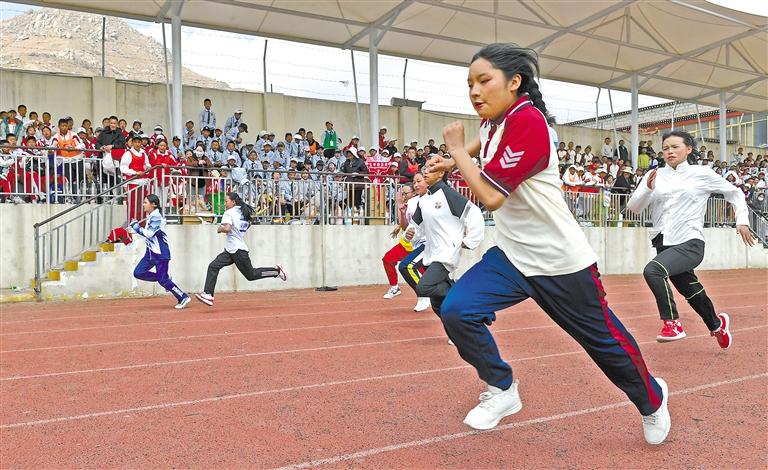 拉萨江苏中学学生参加100米短跑比赛。记者 旦增兰泽 摄